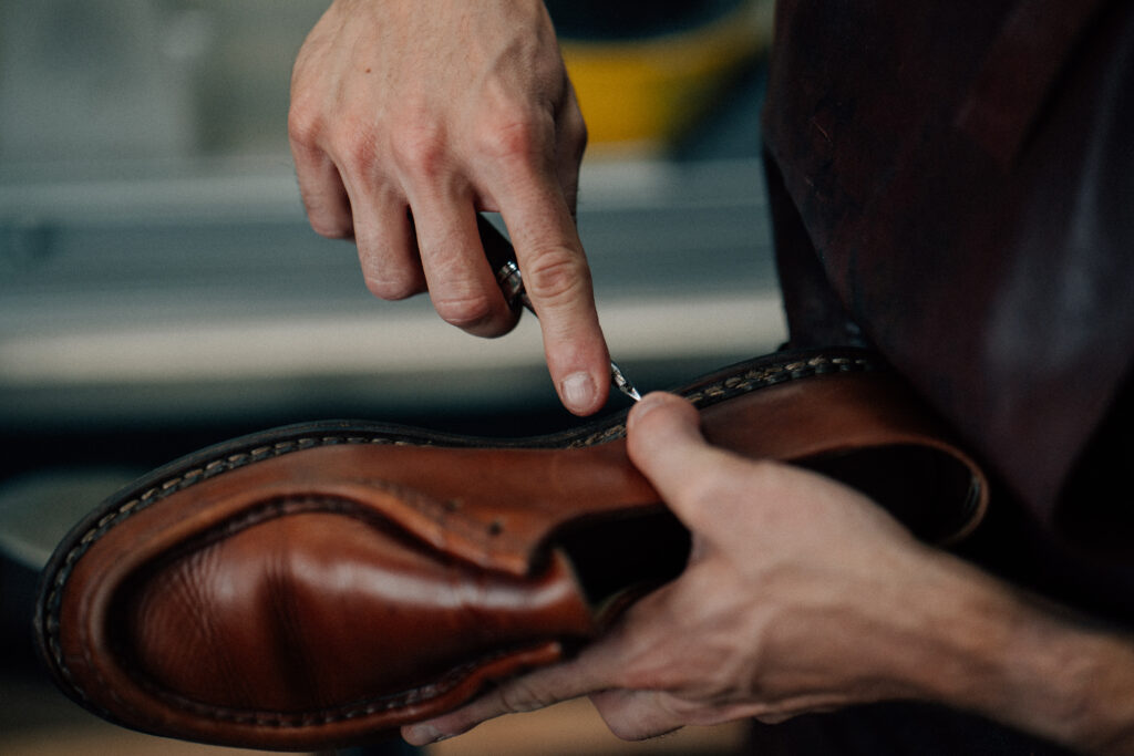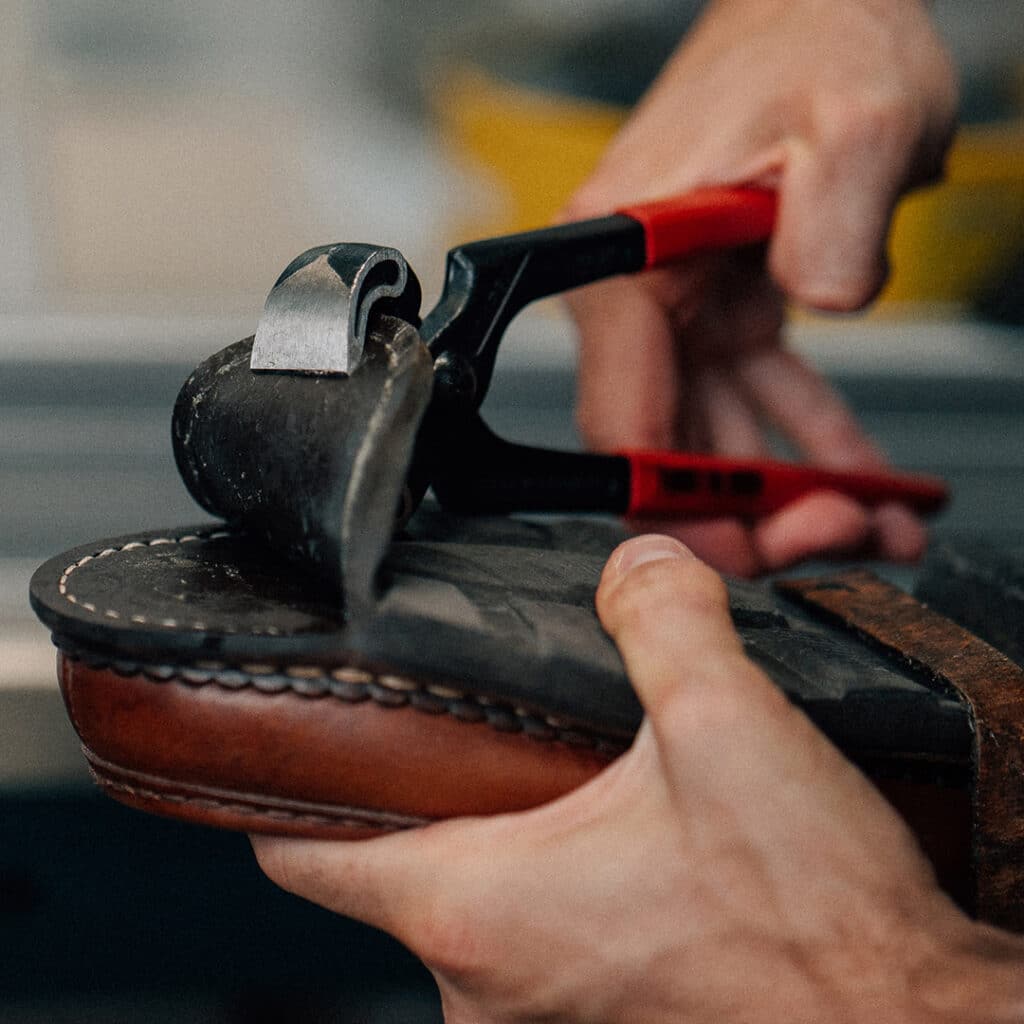 It all starts with a precise diagnosis of the shoe. The craftsmen examine the wear of the sole, the condition of the stitching and the strength of the leather. Once the needs have been identified, the repair process can begin.