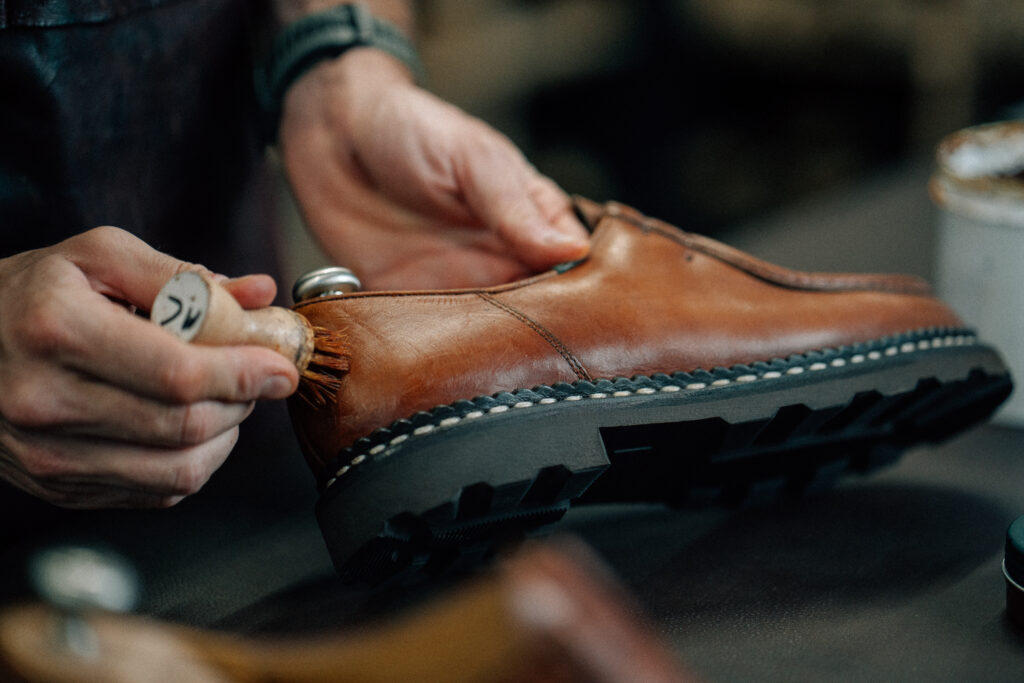 Regular cleaning, brushing, waxing, creams and waterproofing: these simple gestures, carried out over time, ensure that your shoes retain their suppleness and natural patina.