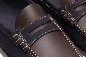 Cette chaussure est en cousu Blake, aussi appelé cousu de part en part. C'est en 1858 que le cordonnier Leeman Reed Blake, jeune employé du fabricant de machines à coudre Singer, inventa cette technique qui apporte plus de souplesse et de légèreté à la chaussure.