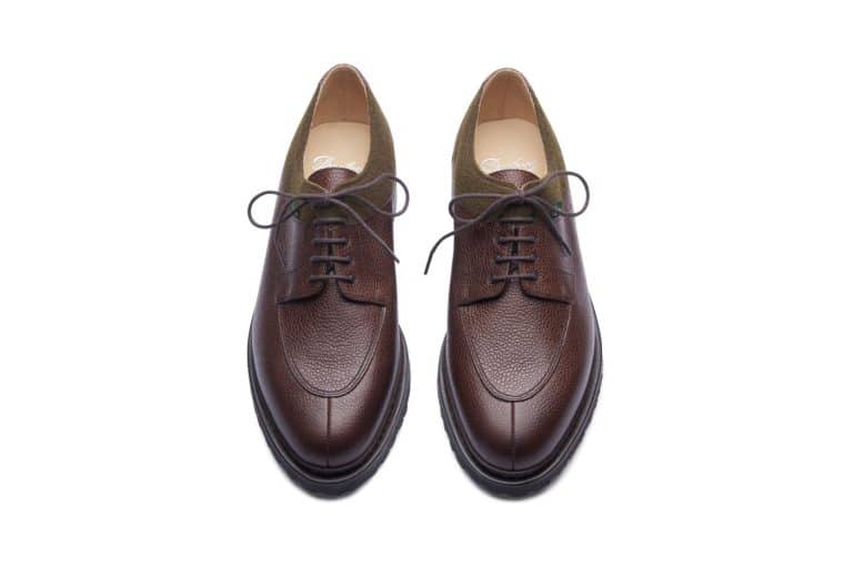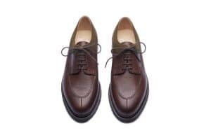 Ce modèle "bout chasse" porte le nom d'une ville fortifiée du sud de la France. Le jeu des matières et finitions a permis à ce derby de traverser les époques pour s'adapter à tous les styles, lui assurant une place parmi les légendes de Paraboot.